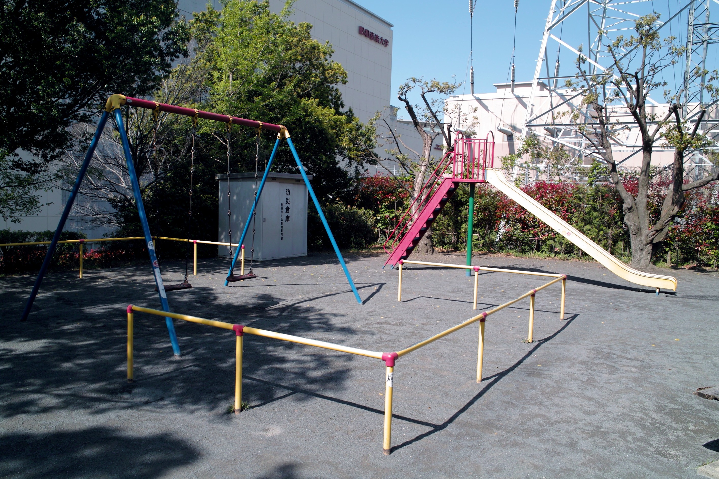 近隣の保育園の園児や、音大の学生、ちいさい子どもを連れた家族にとって、安心して遊べる公園。