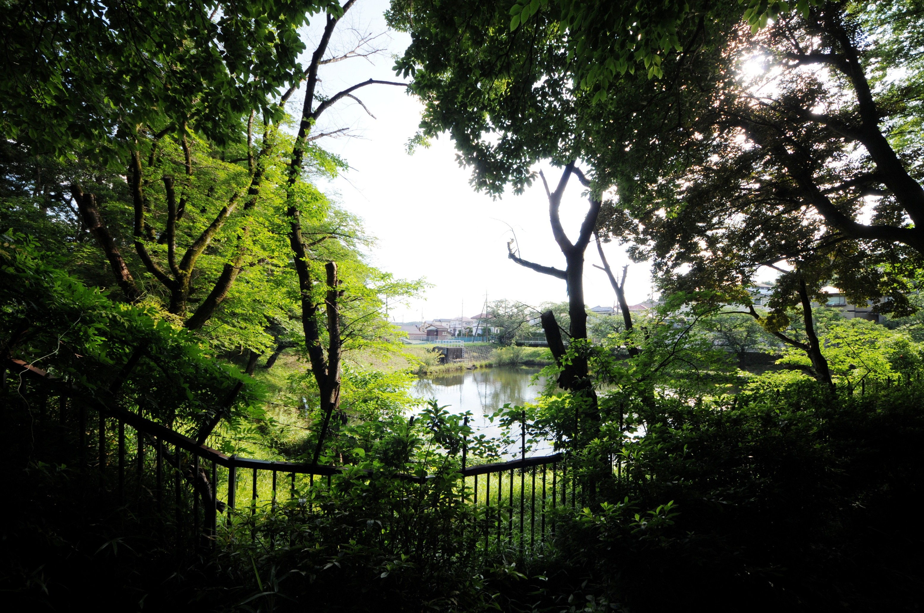 夏は茂った樹々で池が覆われる